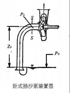 為了將液體從一個較低的位置輸送到另一個較高而壓力也較大的地方去,抽沙泵首先必需將液體從較低的位置吸上來,然后經(jīng)過泵再把液體打出去。泵之所以能吸入液體,主要是依靠吸入池液面上的壓力Po與泵吸入口處的壓力Ps之間的壓力差作用。由方程式可知: